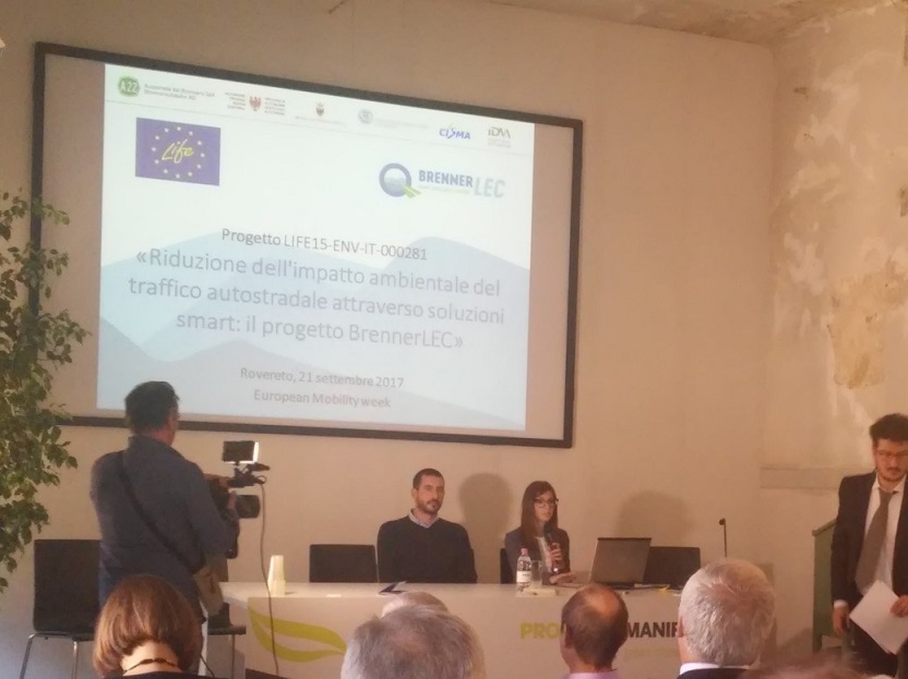 Trentino Sviluppo, a local organization fostering the sustainable development of the socio-economic ecosystem in Trentino, has organized on September 21st 2017, during the European Mobility Week (16-22.09.2017) an event on the topic “sustainable mobility”, organized with the support of the Autonomous Province of Trento. Goal of this event, organized at the headquarters of “Progetto Manifattura” in Rovereto, has been to give visibility to several initiatives in this field in the Province of Trento. The Provincial Agency for the Protection of the Environment of Trento and the University of Trento have been invited to present the BrennerLEC project. The title of the event has been “Trentino, an excellence in the sustainable mobility”.
